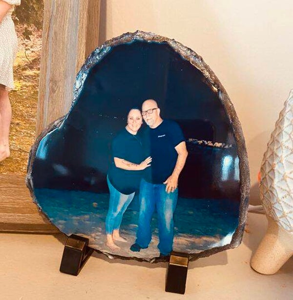 Our slate blanks are sturdy, waterproof, and fade resistant to enjoy for many years to come! These measure around 7.5x7.5 depending on the stone. Stand included.