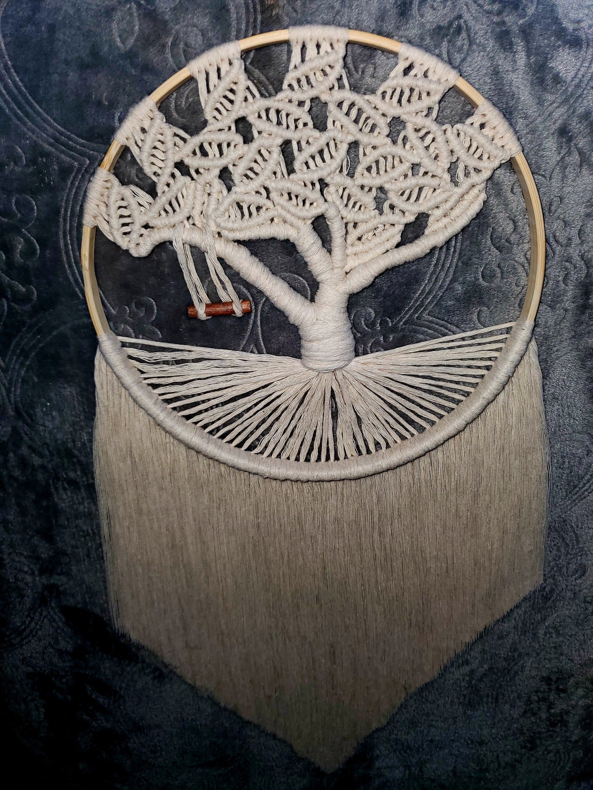 Medium Size Tree Of Life handmade with 100% Natural cotton and wooden hoop. 8inch